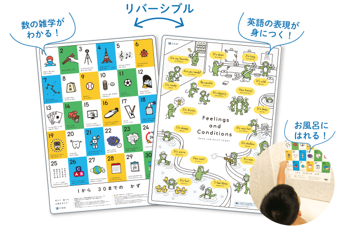 お風呂にはることで、毎日楽しく英語や数への好奇心をはぐくむことができます。