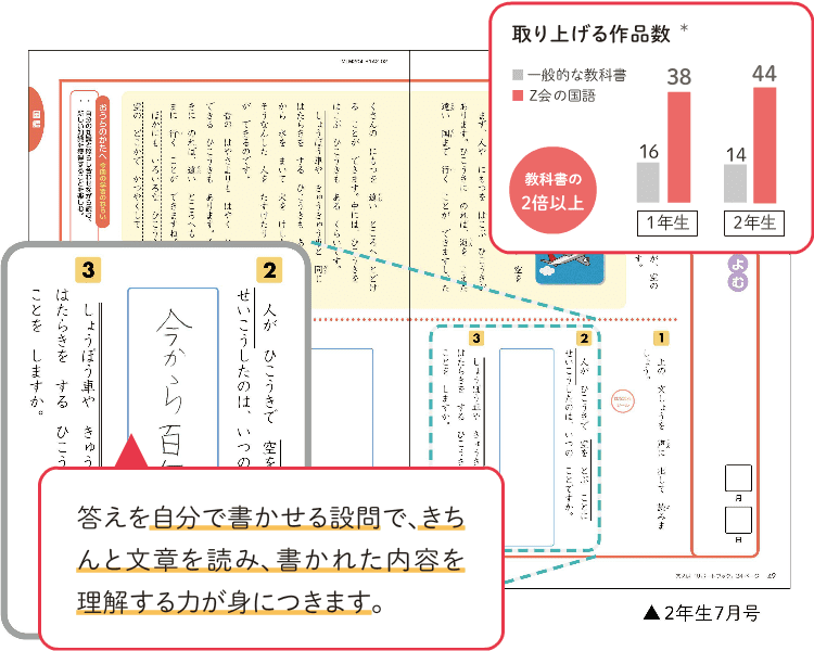 毎月さまざまなジャンルの良質な文章にたくさんふれることで、読解力が鍛えられ、興味や関心が広がります。これを繰り返すことで、文章の正しい読み取りや、内容を理解する力が身につきます。