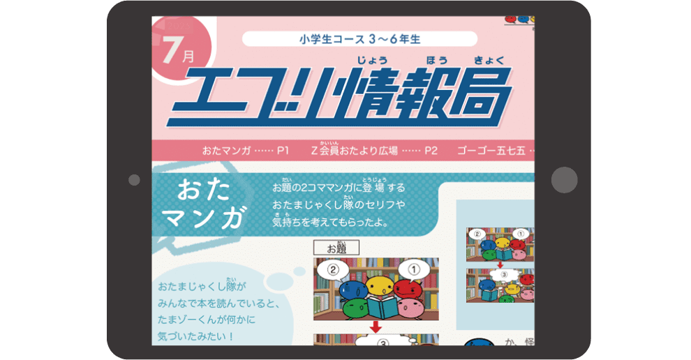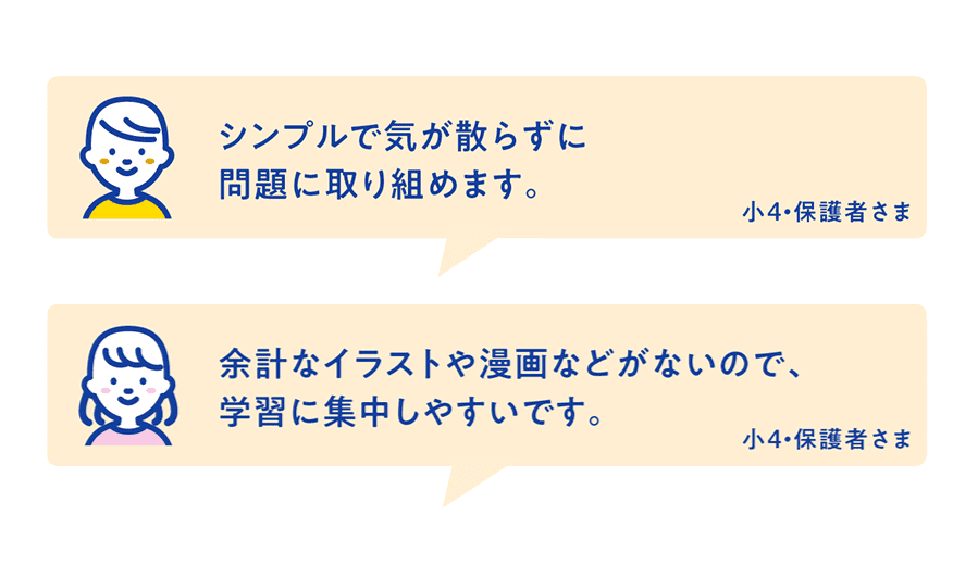 小学生コースのテキストは、学習に集中できるよう、紙面デザインにもこだわっています。