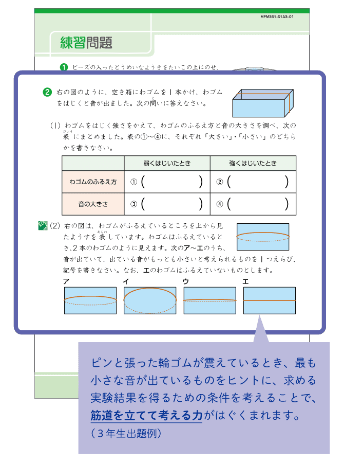 実験や観察の結果から何が言えるかを、説明できる力を身につけます。