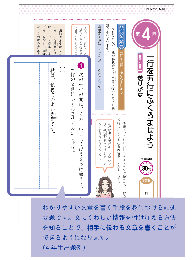 毎月の学習は教科書レベルの内容の確認からスタート。段階を追って少しずつ難度が上がっていくように構成されているので、無理なく実力をつけることができます。