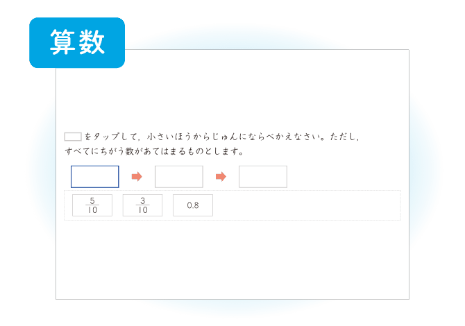 分数を学習します。分子や分母が何を表すかということや、分母が同じ分数の大きさの比べ方を学習した後は、問題演習で理解を深めます。分数と小数の大きさを比べる問題では、分数か小数のどちらかにそろえて考えます。一つの数に対して複数の表し方ができることを理解し、場面に応じて使い分ける力を身につけます。