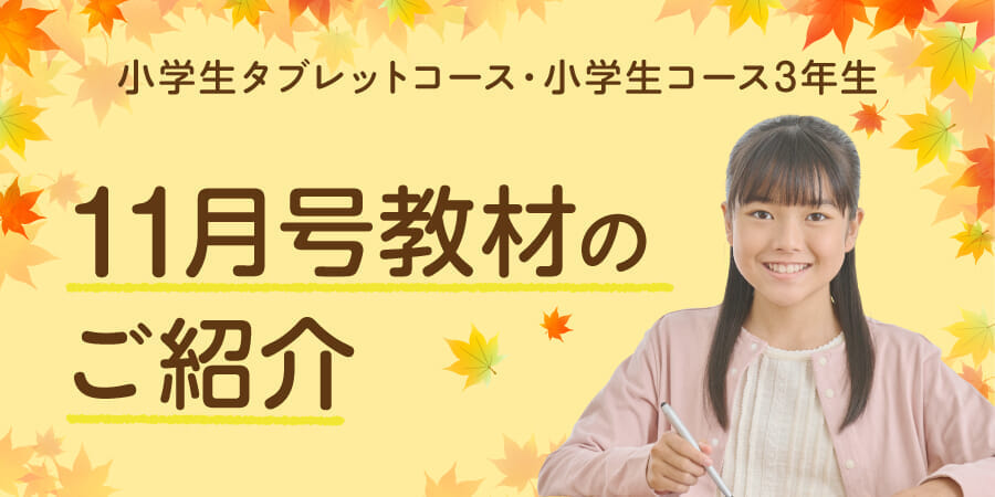 国語、算数、理科、社会、英語、思考・表現力 11月号の学習内容について、くわしくご紹介します。