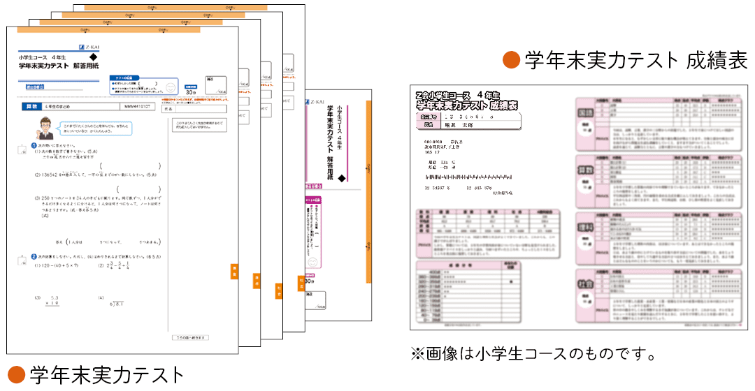 ※「学年末実力テスト」は国語・算数・理科・社会・英語(小学生コースはご受講教科のみ)で実施。小学生タブレットコースでは、テスト・成績表ともにタブレット上でご確認いただきます。