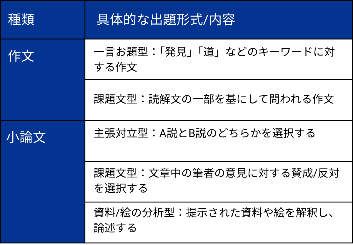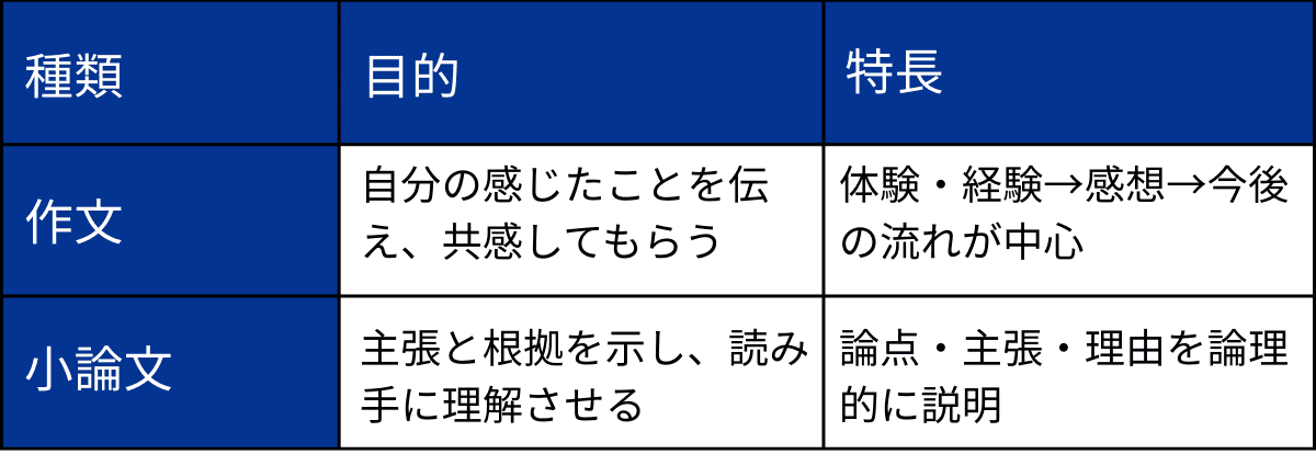 推薦入試では、学校によって作文が出る場合と小論文が出る場合があります。この違いを明確に理解することが、推薦入試対策のはじめの第一歩です。