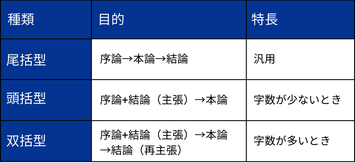 小論文における「序論→本論→結論」の流れを意識し、この基本構成に沿って書けるようになることが最重要です。まずはこの型を確実に身につけてください。