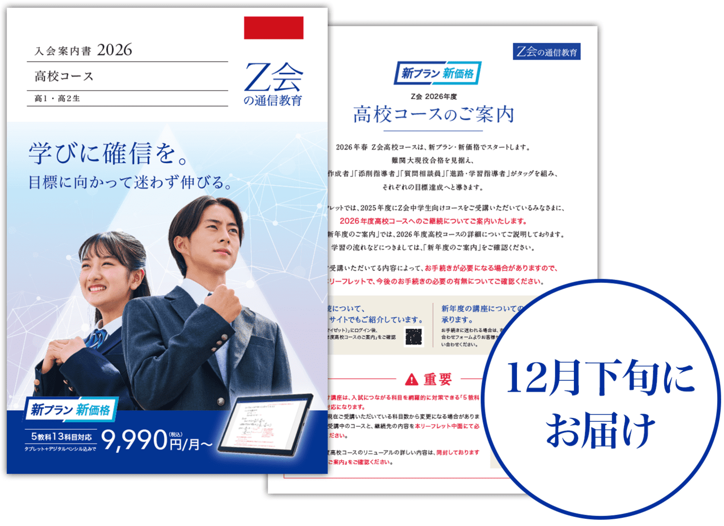 新高1生向け 高校コースのご案内 下記より、コースの詳細をご案内しております『新年度のご案内』と、継続先講座・料金・お手続きについてご案内している『高校コースのご案内』チラシをデジタルブックでご確認いただけます。なお、お手元には12月下旬にお届け予定です。 新年度のご案内 高校コースのご案内
