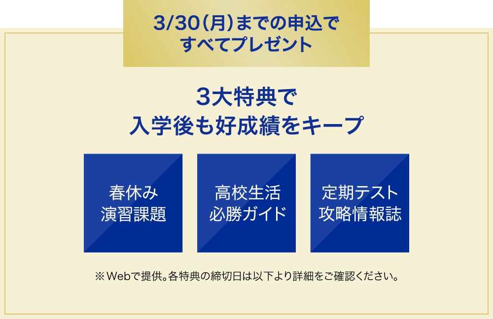 忙しい高校生活。テスト対策は「時間」との勝負です。効率的かつ効果的なテスト対策で、最初から一歩リードできます。