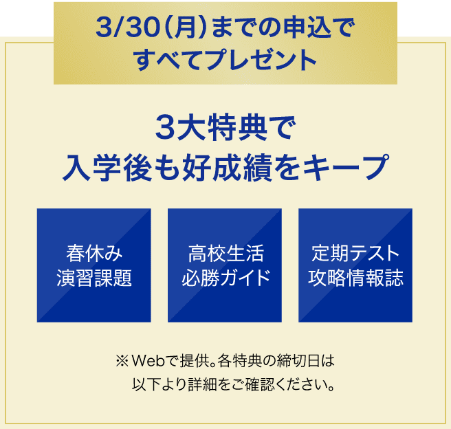 多くの先輩がつまずく「高校学習の難易度アップ」。つまずきを防ぎながら先取りできる学習で、好発進できます。