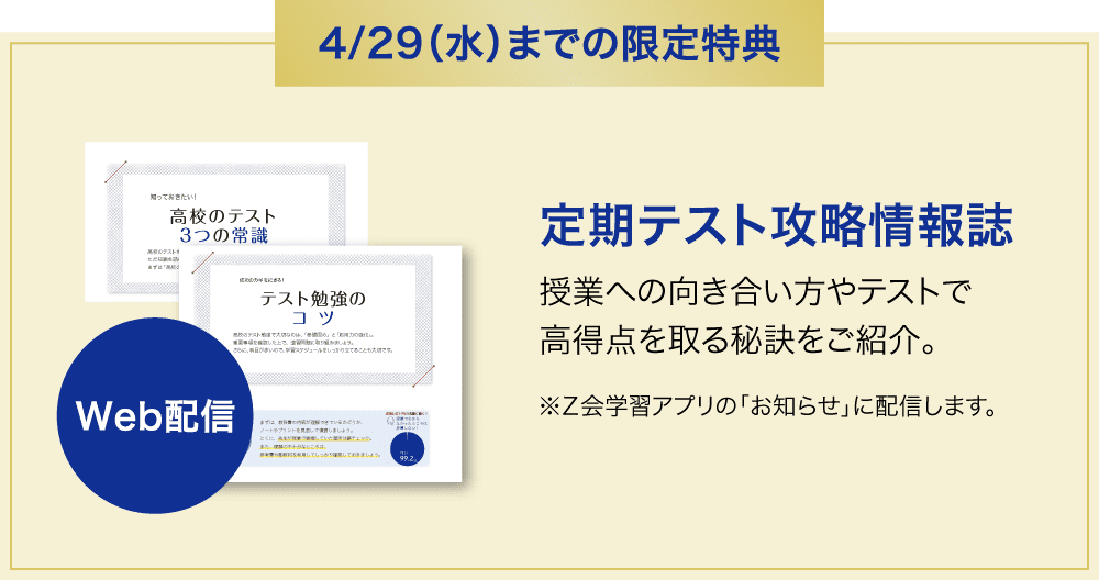 定期テストに役立つ特典がもらえる