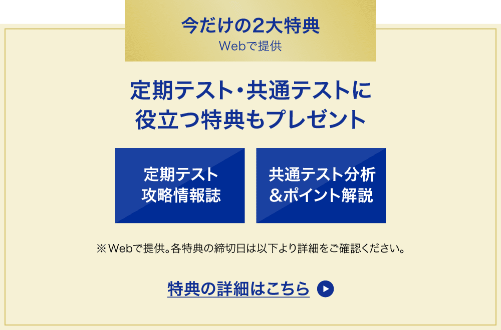 AIが弱点をピンポイントで特定。出題範囲が広くても効率的に対策できます。さらに「これだけは」という内容を厳選した予想問題で、最終仕上げ。差がつく問題での得点力を強化できます。
