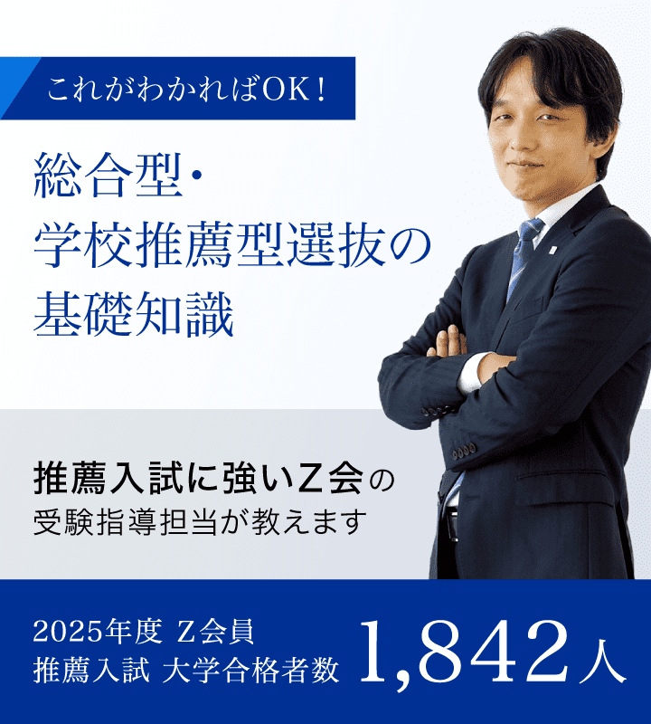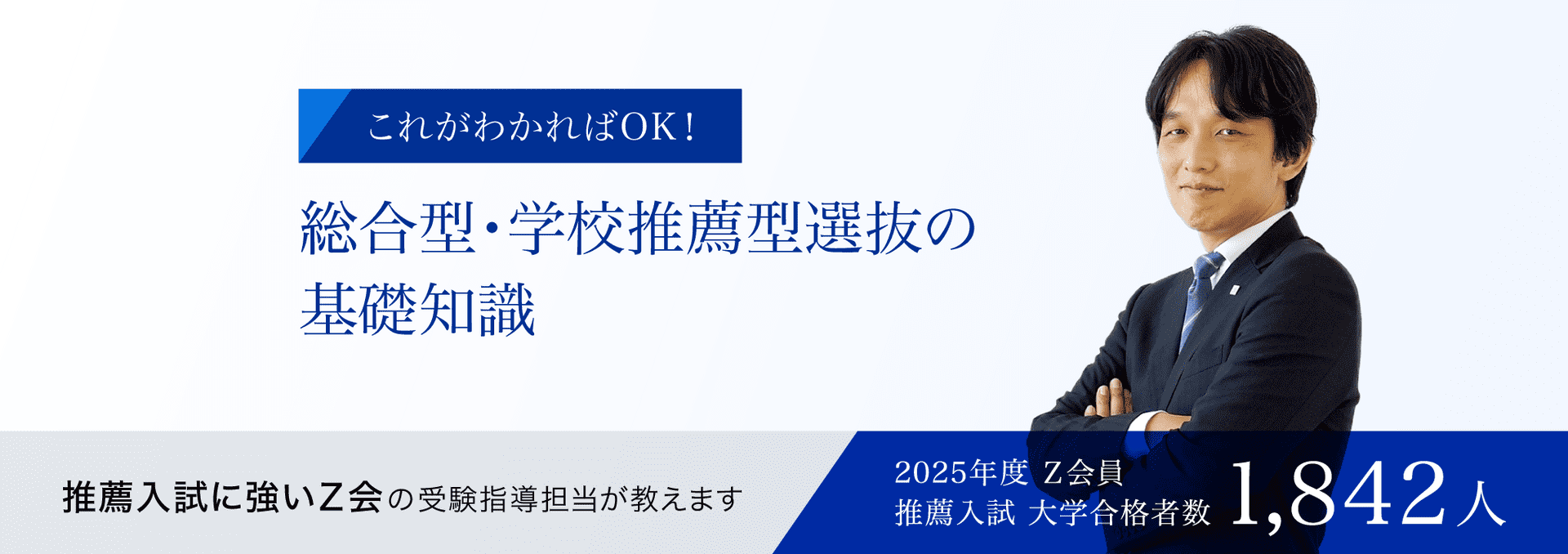 推薦入試(総合型選抜・学校推薦型選抜)とは、学力試験だけでなく、志望理由書や面接などを通じて、受験生の能力や意欲を総合的に評価し、合否を決める入試です。