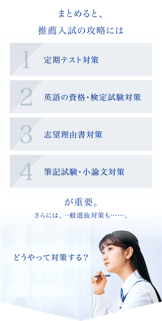 特に難関大学で要件にされることが多く、高いスコアを獲得することができれば、推薦入試を受験できる大学の幅が大きく広がります。