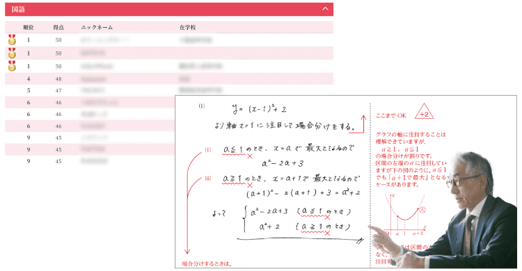 あなたの答案をプロが添削し、「どうすれば得点につながるのか」「東大合格のために押さえておくべきポイントはどこか」を個別に指導します。さらに、演習後には得点ランキングも公開!ライバルの存在を意識しながら学習を進められます。