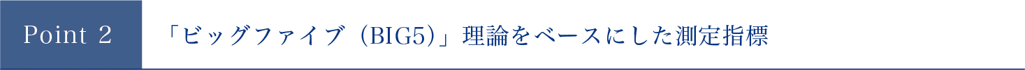 「人の性格は5つの因子によって構成される」という学説に基づいた指標が「ビッグファイブ(BIG5)」です。OECDが実施している「社会情動的スキルに関する調査(SSES)」でも児童生徒の社会情動的スキルの形成及び発達に関する要因を評価する際に使われており、世界的にも信頼性、汎用性が高いとされている理論です。