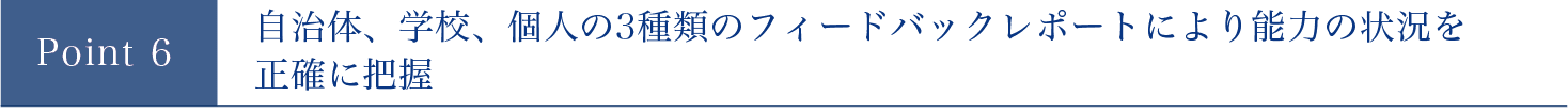 児童生徒の本質的な能力をバイアスをできるだけ排除して測定し、結果を自治体、学校、個人それぞれにフィードバックレポートとしてご返却します。