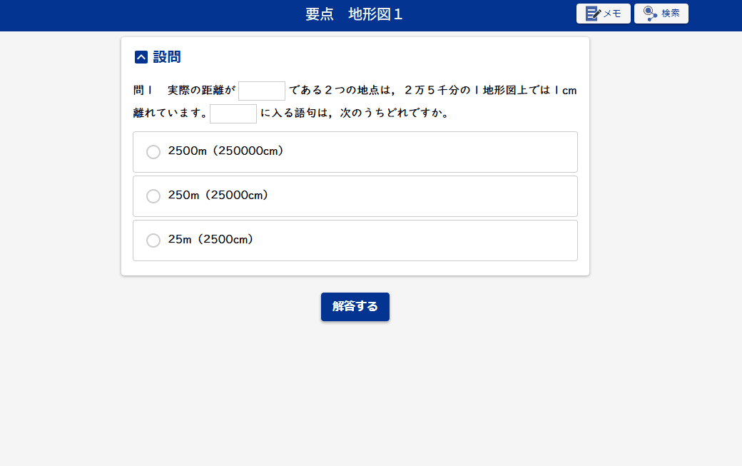 地形図の学習でポイントとなる縮尺の計算について、説明します。