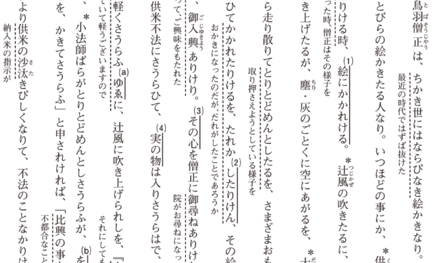 親しみやすい内容の古文をとおして、歴史的仮名遣いや基本的な古語について学びます。