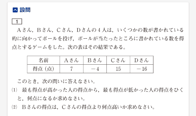 正負の数の加減の文章題です。問題文を正しく読んで解答しましょう。