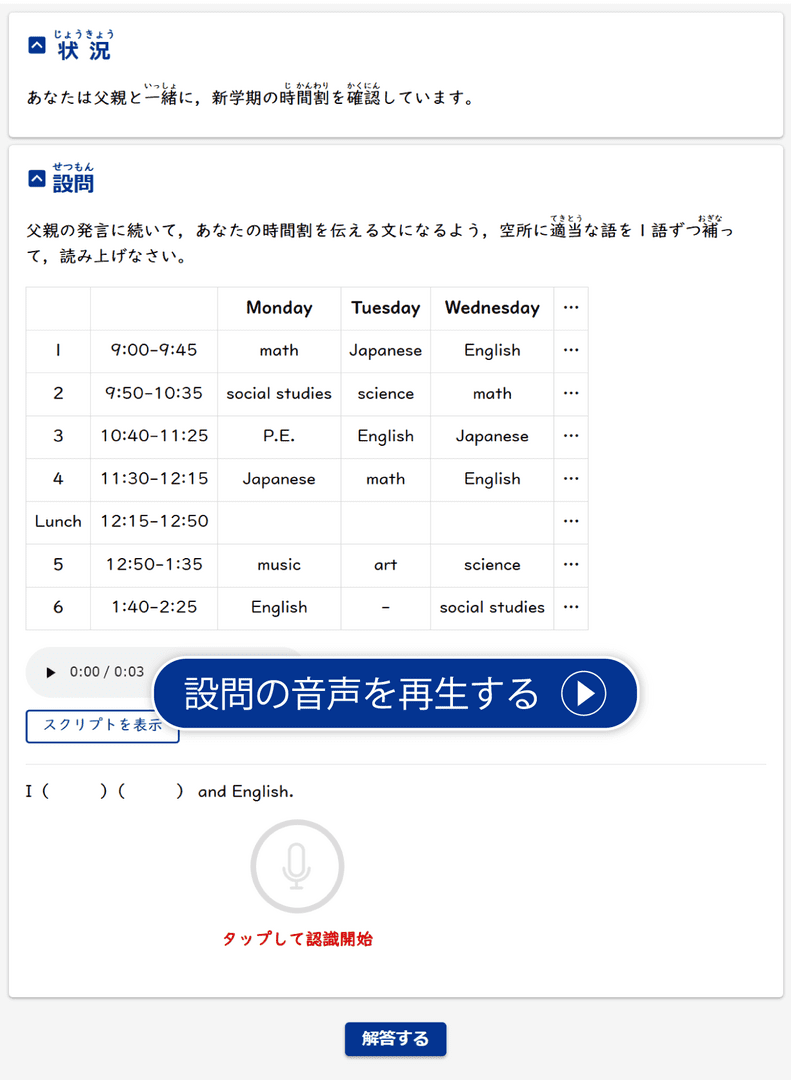 会話文から必要な情報を読み取り、知識を活用して問題を解く方法を確認します。