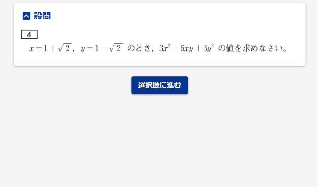 根号をふくむ式の値を求めます。式変形をひと工夫することで解きやすくなります。