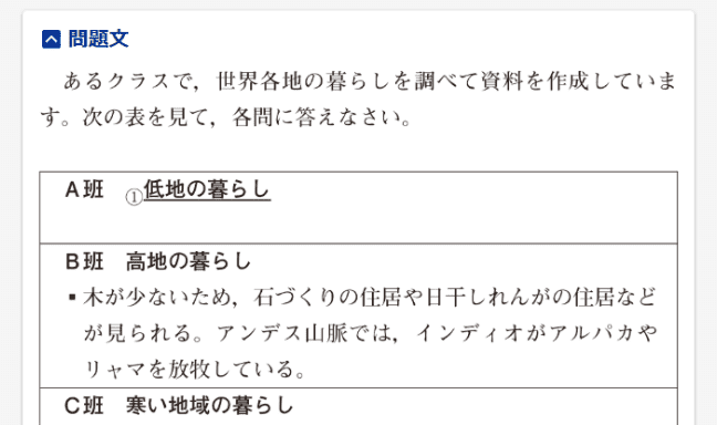 日常の暮らしと社会の授業で学んだ内容を関連付けた添削問題で、総合力を身につけます。