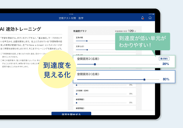 ・AI速効トレーニングは、「できるまで」続き、ハイレベル問題も出題されるため、テスト対策にも十分でした。