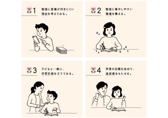「子どもの家庭学習のために、保護者ができることって?」といった