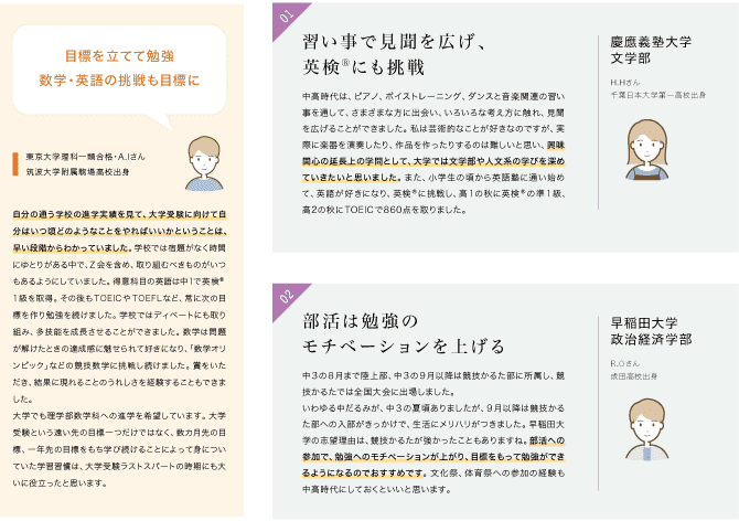 中高一貫校から難関大学に合格した先輩の体験談より、