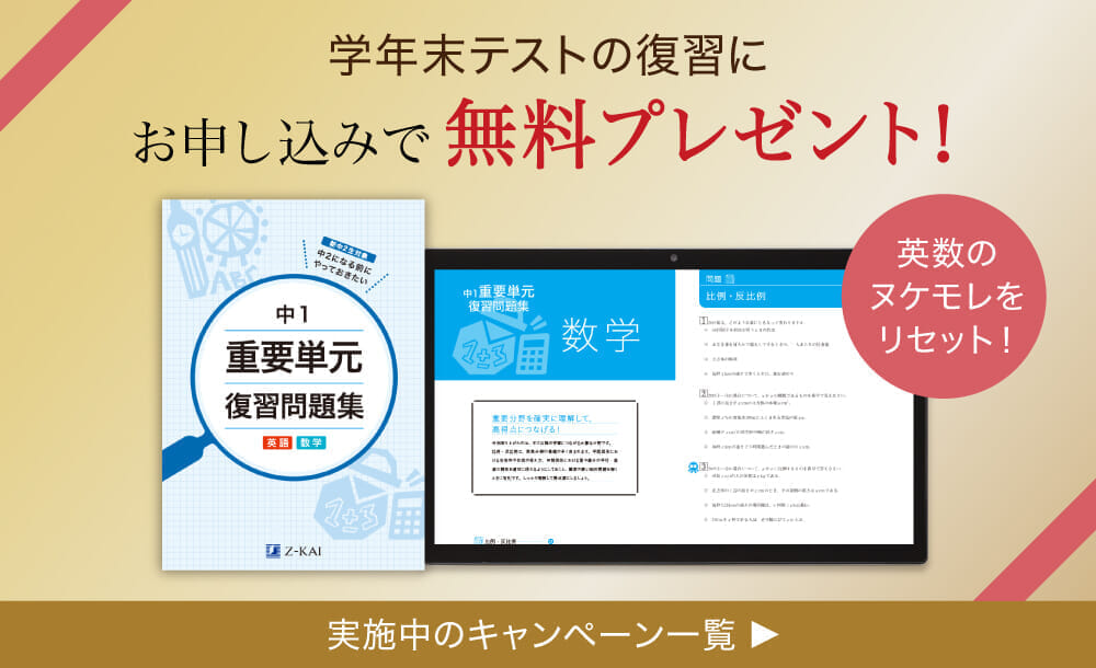 Z会の教材は、中学校3年分の単元が全教科学び放題。