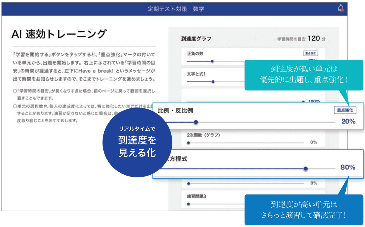 AIが出題する問題を解き進めるだけで、効率よく高得点がねらえます。