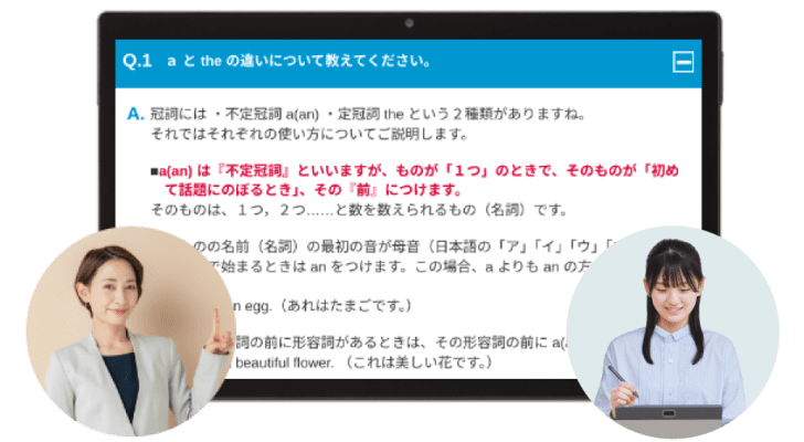 Z会の教材でわからないことがあったり、学習の進め方で悩んだりしたときは、Z会学習アプリの「教えてZ会!」から質問・相談できます。日々の学習で生じるわからない問題の質問だけでなく、進路相談もでき、保護者の方も活用いただけます。