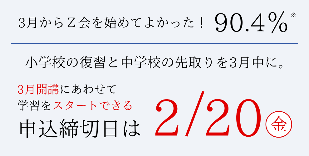 ※Z会受付当日~翌日(土日祝・年末年始を除く)までに回答をお返しします。ご質問・ご相談内容によっては回答に2日程度(土日祝・年末年始を除く)お時間をいただくことがあります。