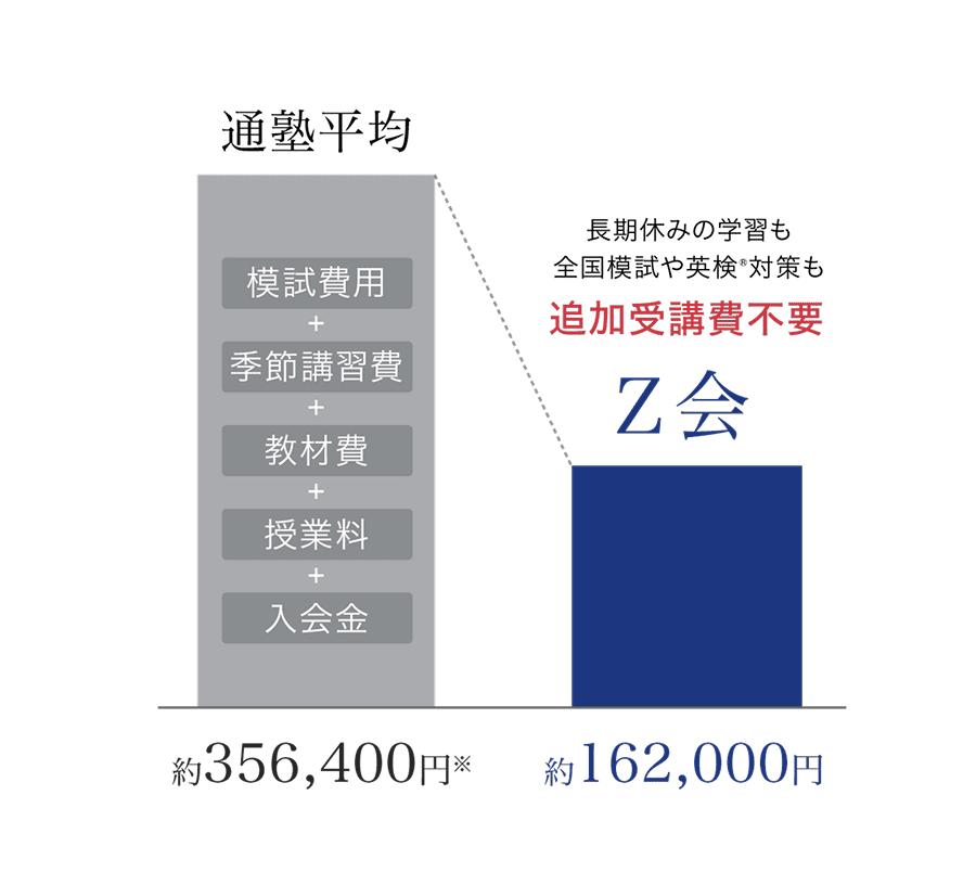 - ※Z会員合格者数は、通信教育・映像授業・オンライン授業受講生、教室本科生・講習生、および提携塾のZ会講座受講生の集計です。