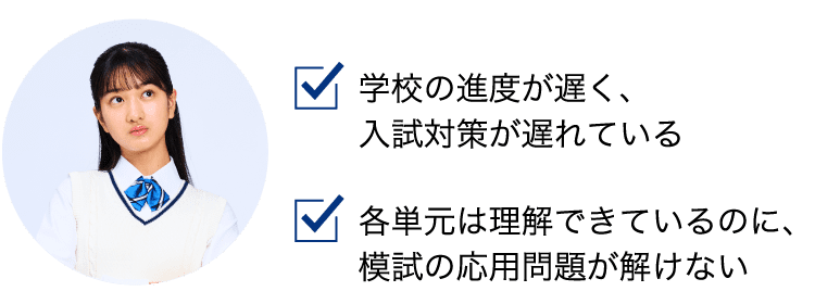 最難関大の特徴である”多様な形式での出題“を行い、典型問題をひとひねりした問題を解くための考え方・解き方を身につけられる。