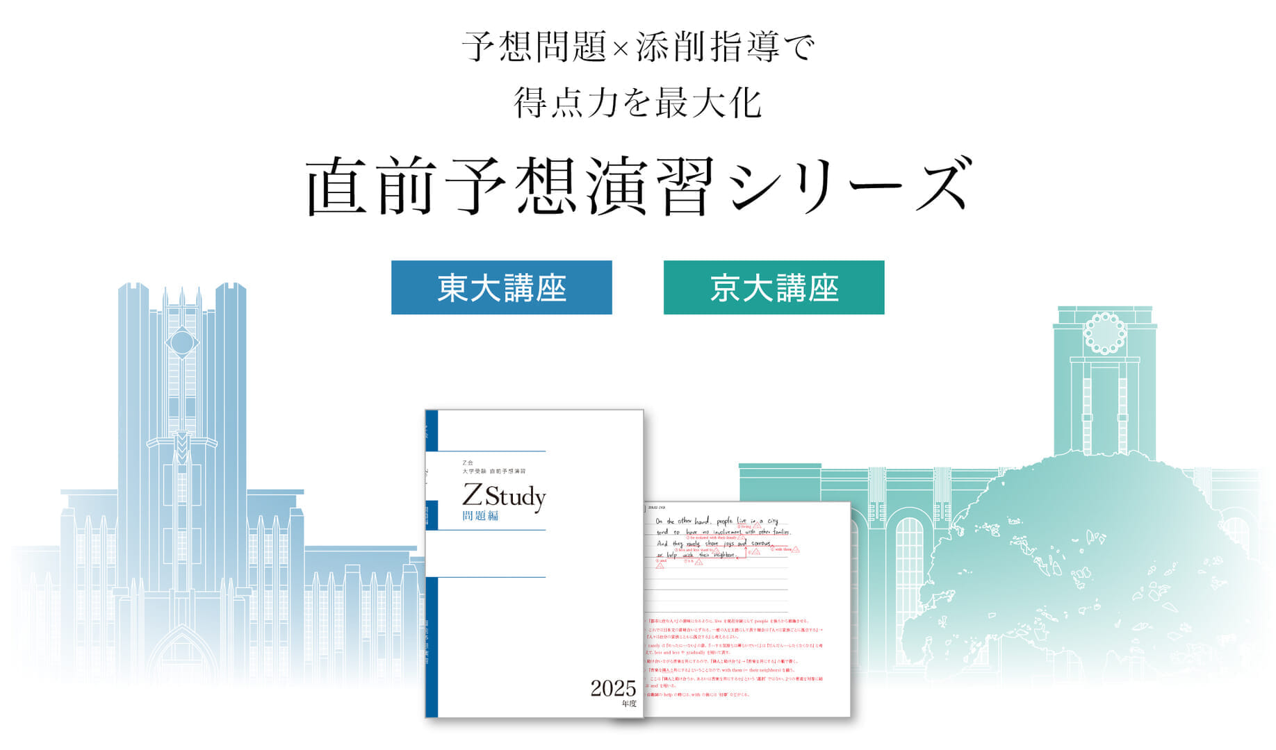 1/30(金)までに「直前予想演習シリーズ 東大講座・京大講座」と「駿台×Z会 東大・京大本番実戦テスト講座」の両方をお申し込みの方には、Amazonギフトカード2,000 円分を進呈します。