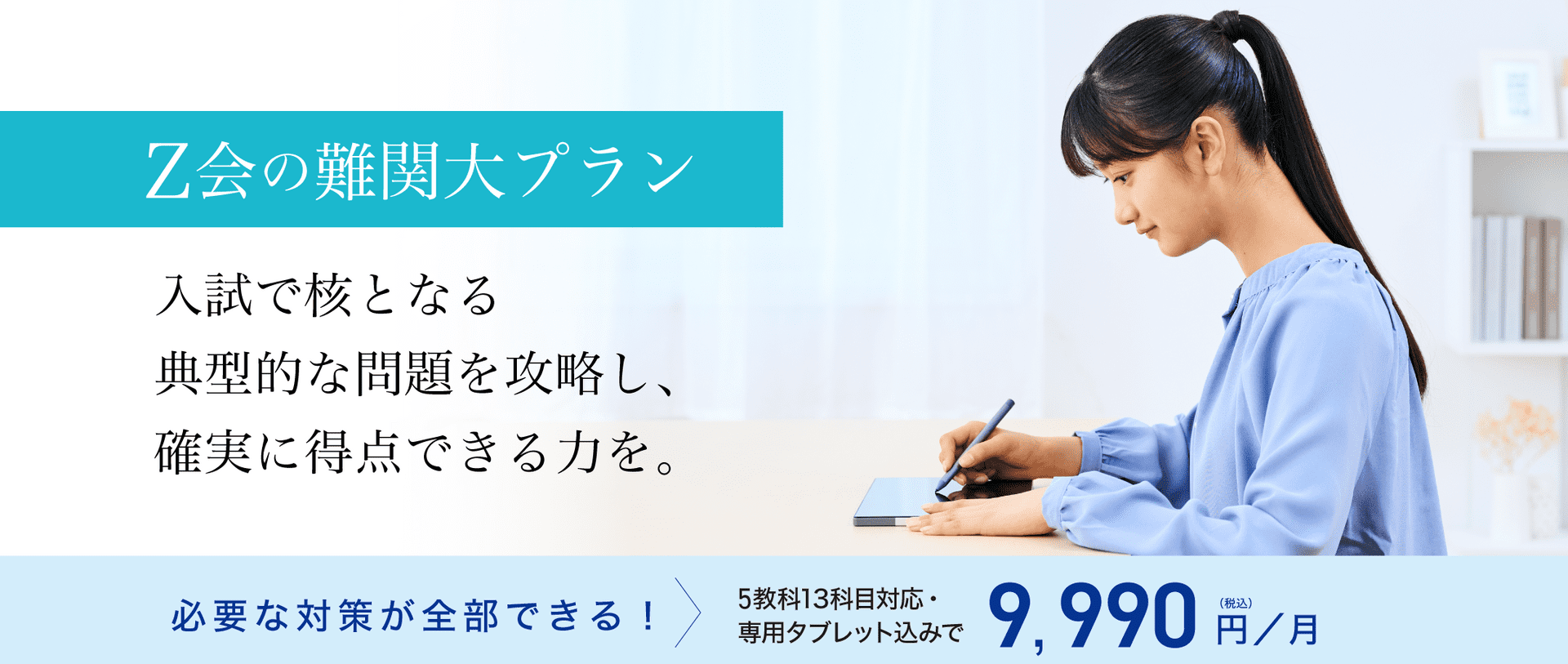 Z会なら、映像授業を交えた「徹底した基礎固め」と、プロの指導で得点力を伸ばす「実戦的な演習」で、難関大合格に必要な力を身につけられます。