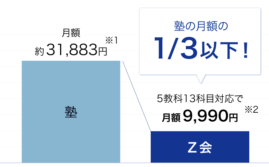 ※2 「難関大プラン」を12カ月一括払いで受講した場合の1カ月あたりの受講会費。