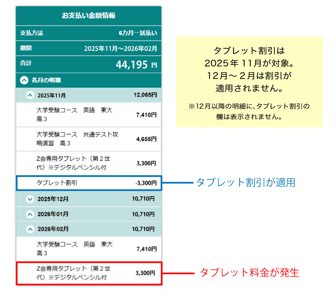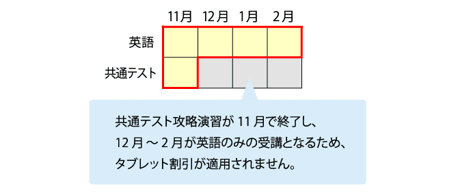 ※その他科目の追加受講により12月以降も2講座以上の受講となった場合には、タブレット割引が適用されます。