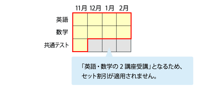 ※その他科目の追加受講により3講座以上の受講となった場合、12月~2月にもセット割引が適用されます。