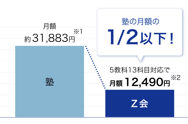 ※2 「最難関大プラン」を12カ月一括払いで受講した場合の1カ月あたりの受講会費。