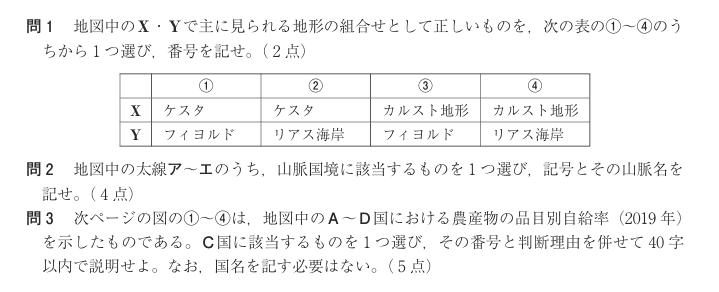 科目別の出題内容・