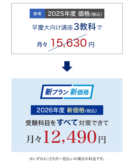 ※2 「最難関大プラン」を12カ月一括払いで受講した場合の1カ月あたりの受講会費。
