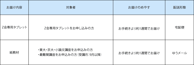 - 毎月払いの方でも、「Z会専用タブレット」をご購入される場合は、精算が発生する場合があります。以下「Z会専用タブレットのご精算」を必ずご確認ください。