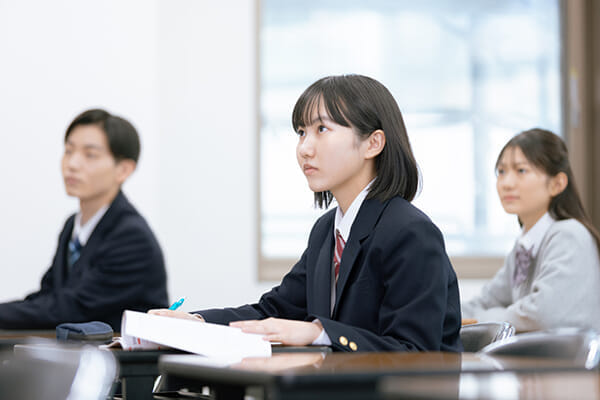 Z会進学教室ラボラトリ三島の高校部では、「集団授業」「1対1個別指導」「AI基礎完成」の3つの講座を提供。学習目的や自分のスタイルに合った講座を選ぶことで、より効果的に学習を進めることができます。