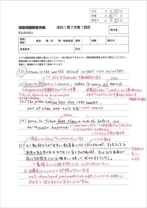 個々の学力を確実に伸ばす、厳しく丁寧な添削指導
