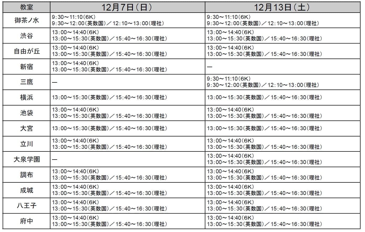 ※理社のみ受験の方は上記の理社開始時間10分前に教室にお越しください。