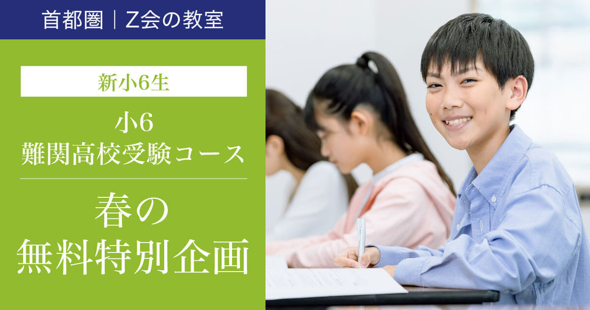 Z会の教室では、進級前に無料特別企画(公開テストや授業体験)を実施、春期講習からは中学受験(受検)をしない小6難関高校受験コースが開講します。
