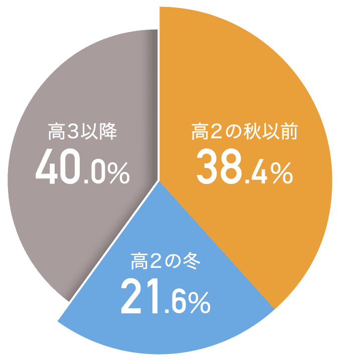 「まだ高2」と思っている間に、ライバルとの差は開き始めます。合格者の過半数が受験勉強を始める高2の後半期。今、スタートを切ることが、合格への大きなアドバンテージにつながります。