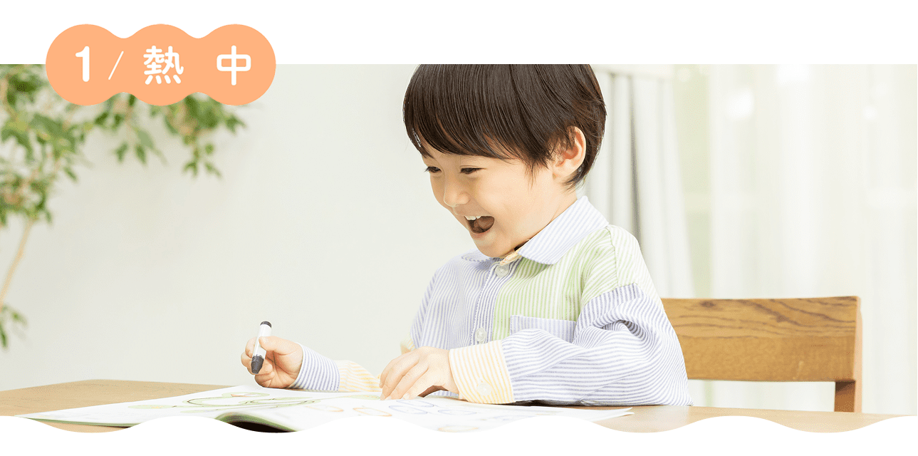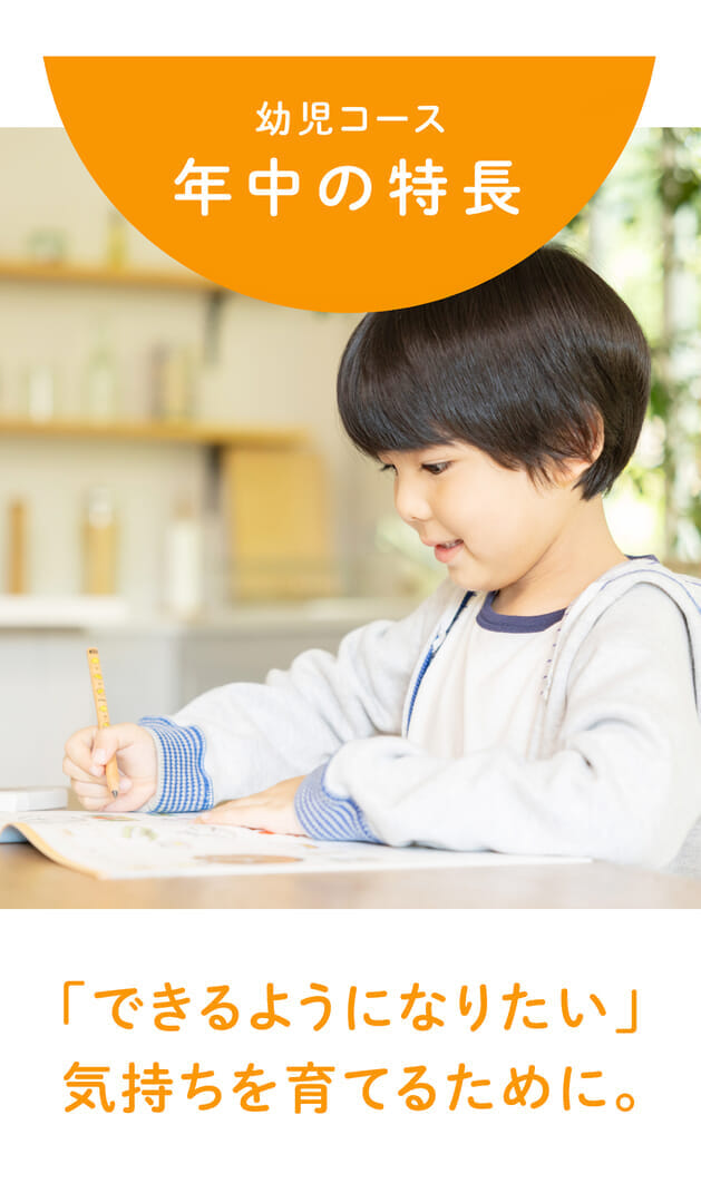 幼児コース年中では、「できるようになりたい」気持ちを応援するワーク類や、特別感のある体験課題で「学ぶ楽しさ」をたっぷりと味わえます。